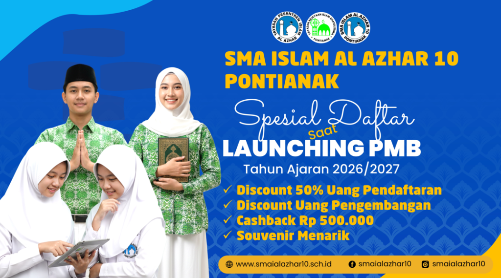 SMAIA10 — SMA Islam Al Azhar 10 Pontianak akan segera membuka Penerimaan Murid Baru (PMB)