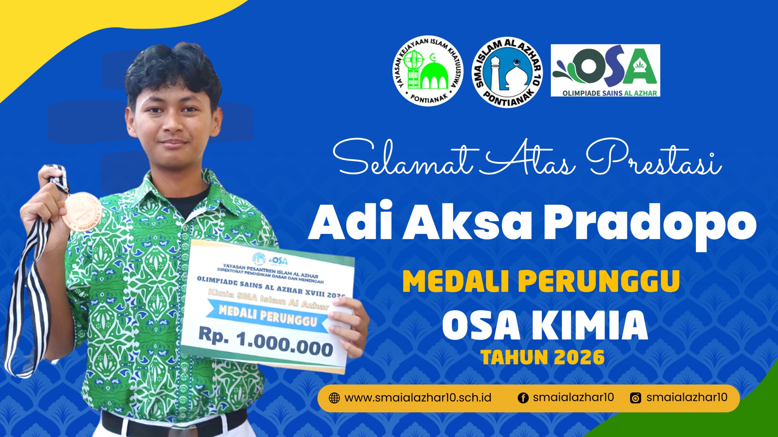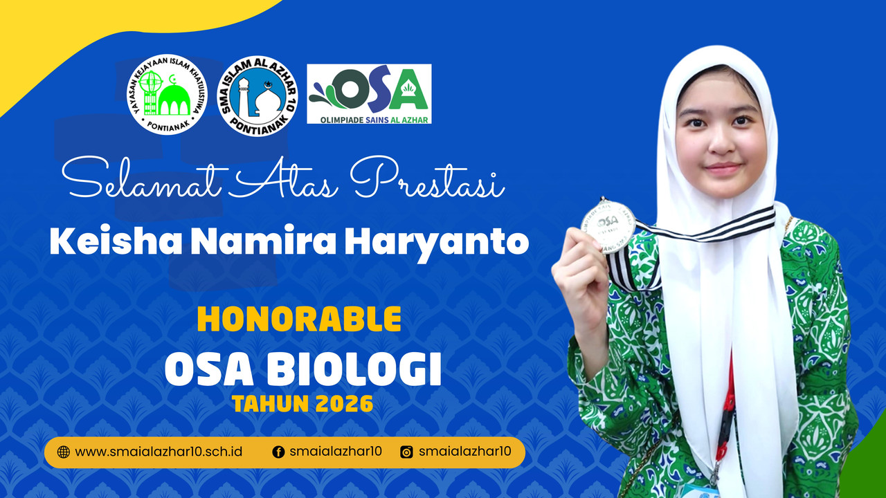Prestasi ini menjadi bukti komitmen SMA Islam Al Azhar 10 dalam membina dan mengembangkan potensi murid di bidang akademik, khususnya sains, serta mencetak generasi unggul yang mampu bersaing di tingkat nasional.